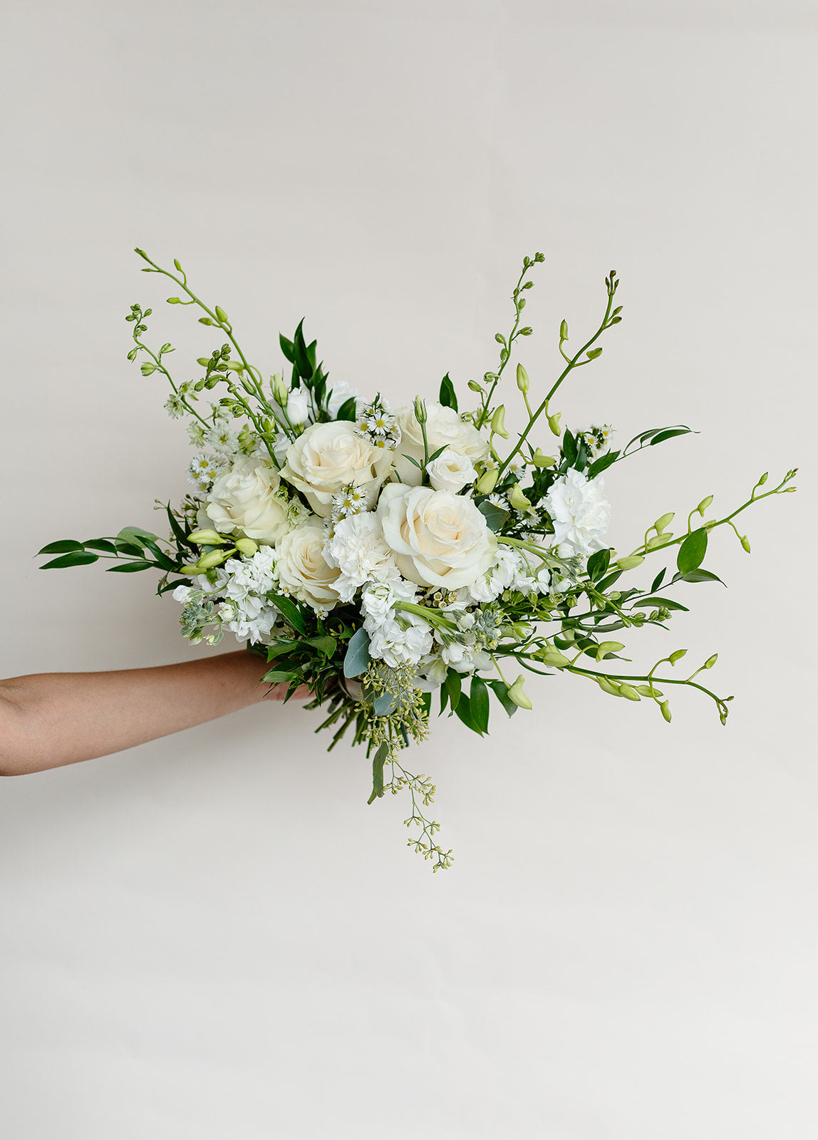 The Verdant Bliss bridal bouquet is a lush blend of vibrant greens and crisp white blooms, embodying the fresh beauty of nature. With its timeless elegance and organic charm, this bouquet is perfect for the bride who seeks a serene yet sophisticated touch for her special day.